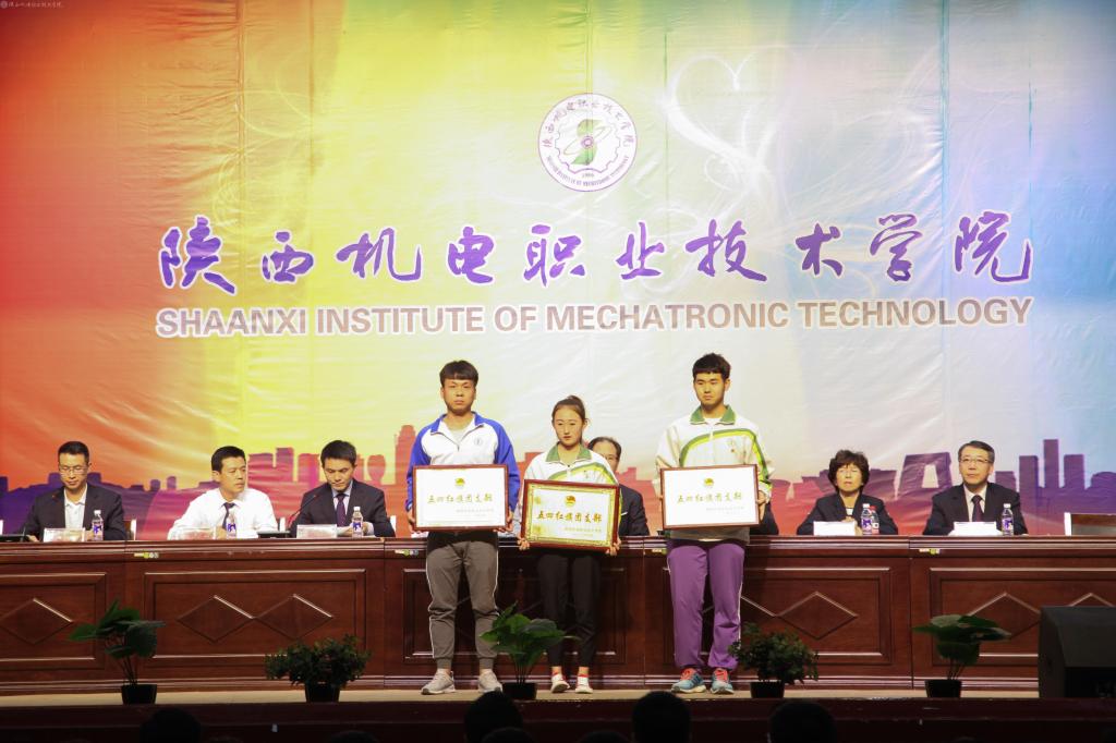 大會(huì)在莊嚴(yán)的國歌聲中拉開帷幕,黨委副書記、紀(jì)委書記鄧新治宣讀關(guān)于授予2017年度共青團(tuán)工作優(yōu)秀獎(jiǎng)和先進(jìn)團(tuán)組織的決定;黨委委員、院長助理趙爭東宣讀關(guān)于表彰2017-2018年度先進(jìn)集體及先進(jìn)個(gè)人的決定;學(xué)工部部長朱云潔宣讀關(guān)于表彰2017年“學(xué)憲法講憲法”演講比賽優(yōu)秀學(xué)生、優(yōu)秀指導(dǎo)教師和優(yōu)秀組織單位的決定;學(xué)生處關(guān)于表彰2018年“星級(jí)”文明宿舍的決定;教務(wù)處處長王建斌宣讀陜西機(jī)電職業(yè)技術(shù)學(xué)院關(guān)于表彰獎(jiǎng)勵(lì)2018年微課教學(xué)比賽獲獎(jiǎng)教師的決定,并進(jìn)行了頒獎(jiǎng)。14會(huì)計(jì)動(dòng)漫高職班喻思思同學(xué)代表受表彰的學(xué)生進(jìn)行了發(fā)言。