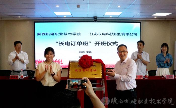 開班儀式上分別由向紀明和周娟、徐圣月和季星共同為陜西機電職業(yè)技術學院“教學實訓基地”與江蘇長電科技股份有限公司“人才培養(yǎng)基地”進行了揭牌。