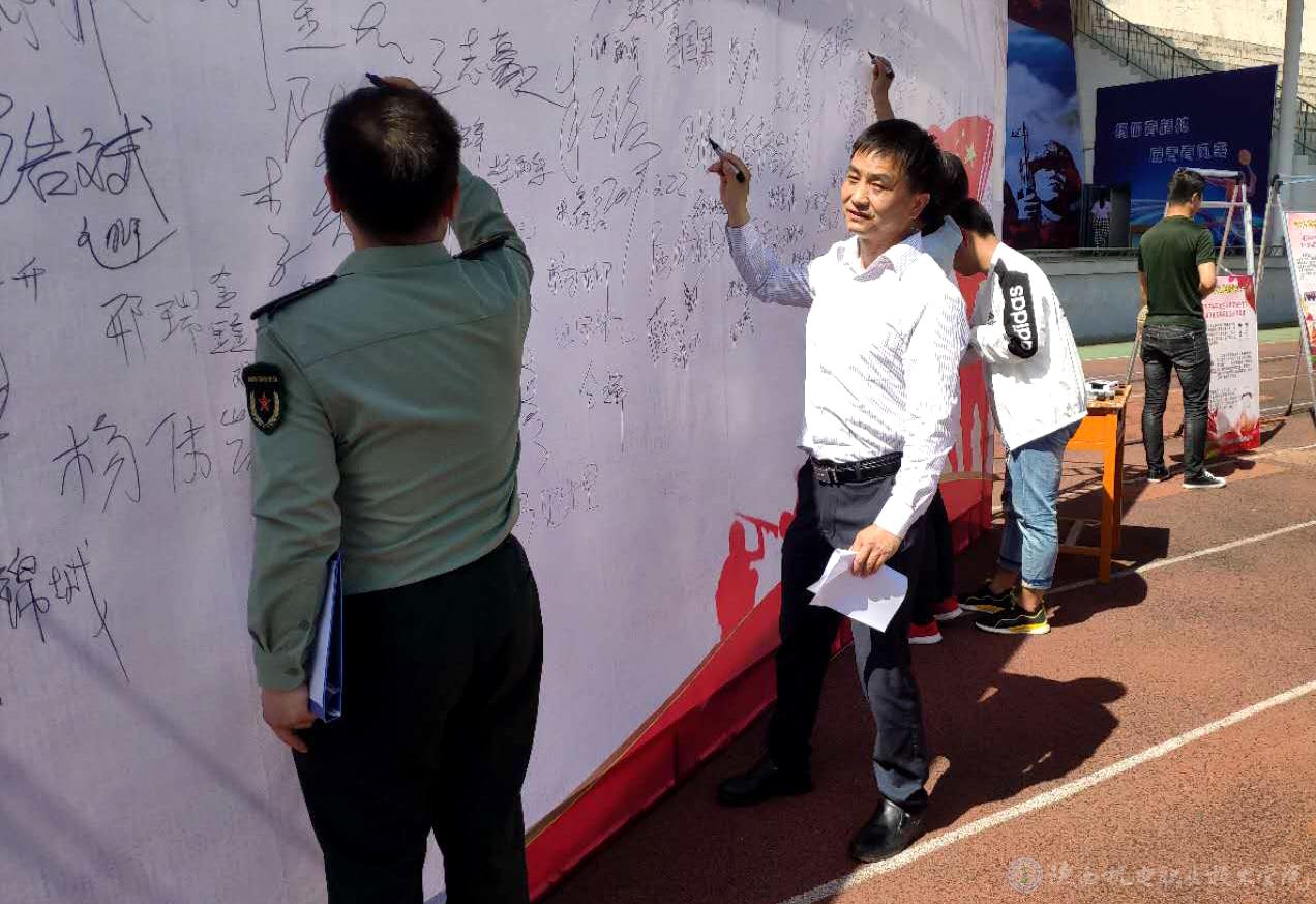 學(xué)生參軍報(bào)國的熱情很高,會(huì)議組織緊張有序。會(huì)后,學(xué)生們在簽名墻簽名留念。