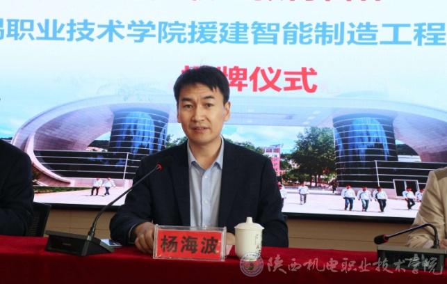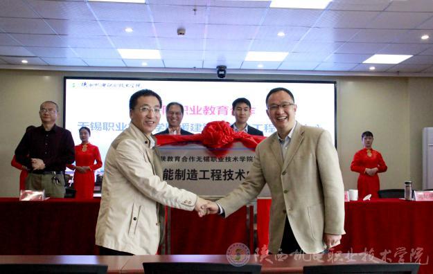講座結(jié)束之后,兩校進(jìn)行了《蘇陜職業(yè)教育合作-無錫職業(yè)技術(shù)學(xué)院援建智能制造工程技術(shù)中心》揭牌儀式。教育廳高教處副處長楊海波、無錫職業(yè)技術(shù)學(xué)院院長龔方紅、我院書記伊遜智、院長向紀(jì)明參加了此次活動,本次活動的進(jìn)行標(biāo)志著兩院合作進(jìn)入實(shí)質(zhì)性新的階段。