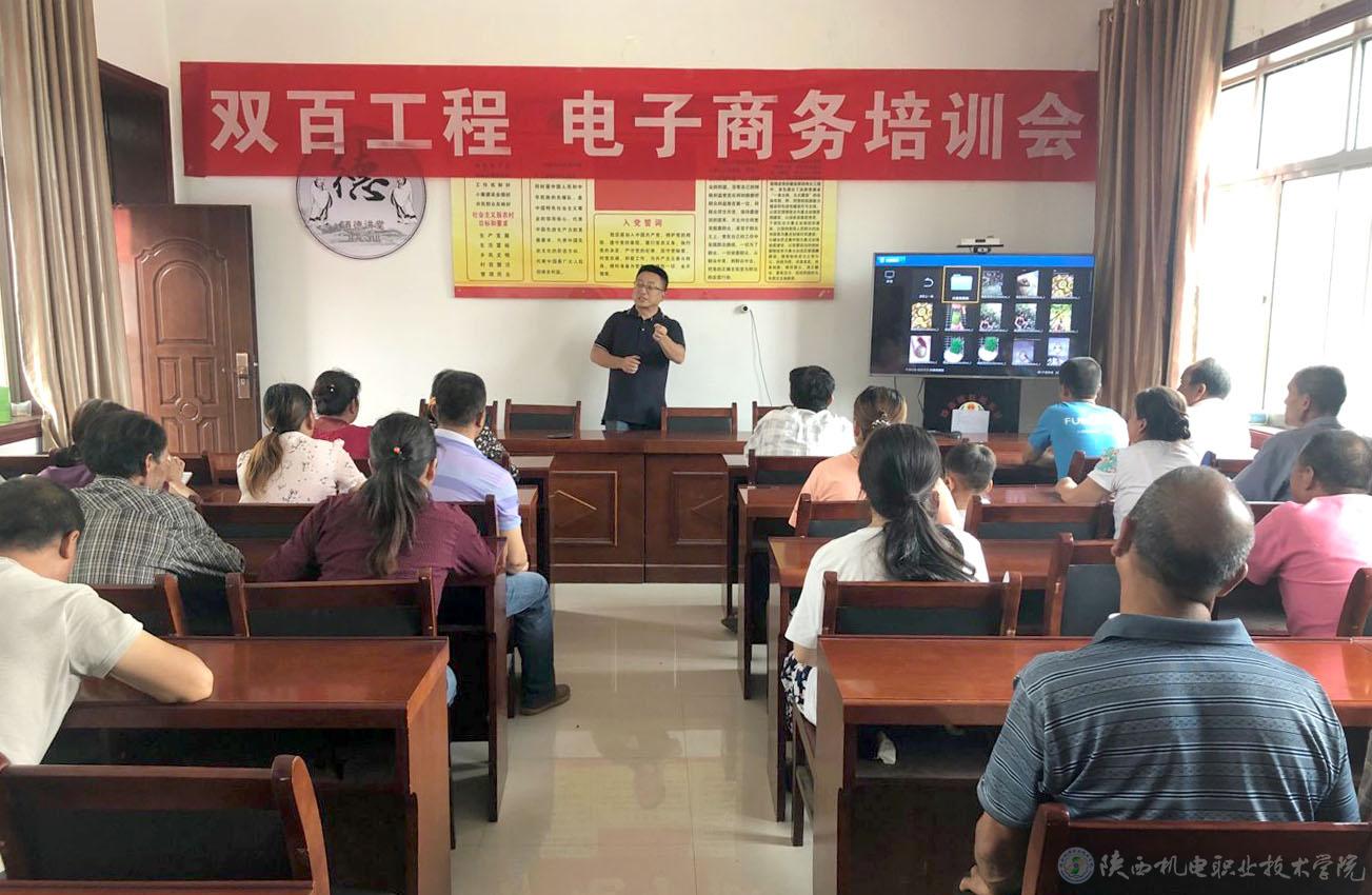 6月19日,陜西機電職業(yè)技術(shù)學(xué)院扶貧領(lǐng)導(dǎo)小組再次為“雙百工程”幫扶縣區(qū)眉縣進行電商培訓(xùn),此次派我院信息工程系講師李選臣分別前往齊鎮(zhèn)齊西村和官亭村為當(dāng)?shù)刎毨糸_展獼猴桃銷售電商知識培訓(xùn)共兩場。