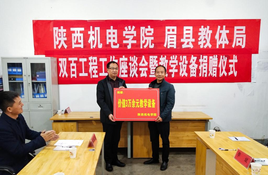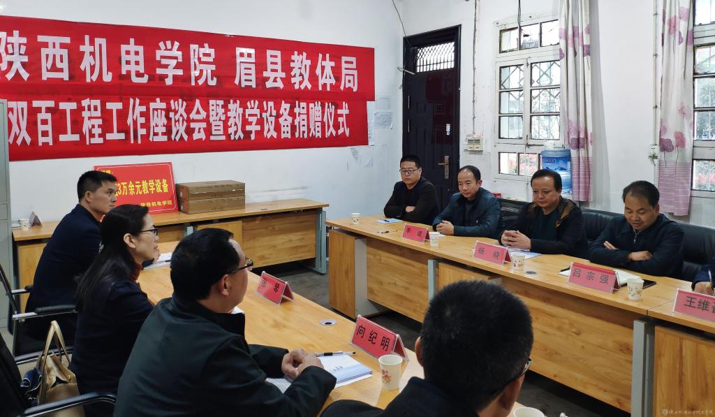 為教育扶貧辦實(shí)事、改善眉縣湯峪鎮(zhèn)羊倉堡村基礎(chǔ)教育教學(xué)條件。10月15日下午,學(xué)院黨委副書記、院長向紀(jì)明,副院長張琴,院長助理趙爭東,黨委宣傳部部長李明一行4人赴眉縣開展“雙百工程”工作座談會暨教學(xué)設(shè)備捐贈儀式。眉縣教體局黨委副書記、副局長呂宗強(qiáng),湯峪鎮(zhèn)紀(jì)委書記王維召,湯峪鎮(zhèn)教委教育專干王震飛,羊倉堡小學(xué)校長李斌等參加活動(dòng)。會議由眉縣學(xué)生資助管理中心主任楊曉主持。