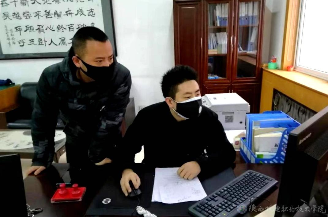 黨委學(xué)工部部長(zhǎng)王建斌(左)、副部長(zhǎng)常小凱(右)審核上報(bào)數(shù)據(jù)