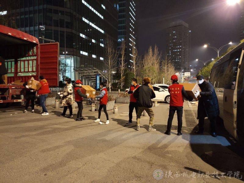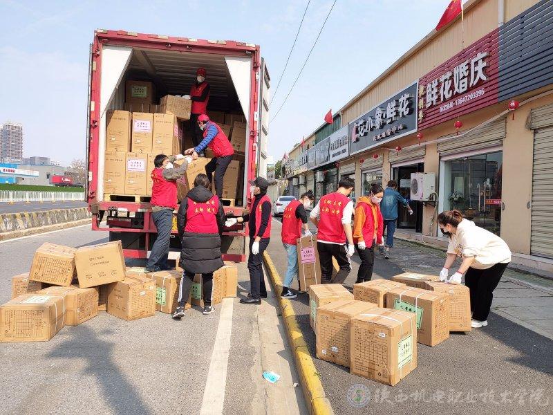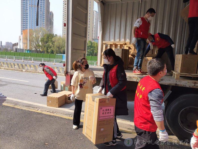 為甘肅醫(yī)療隊搬運(yùn)物資(圖中穿黑色衣服的是盧子昕)