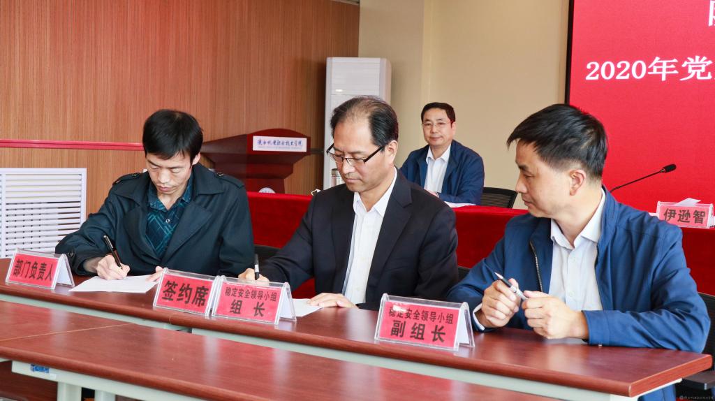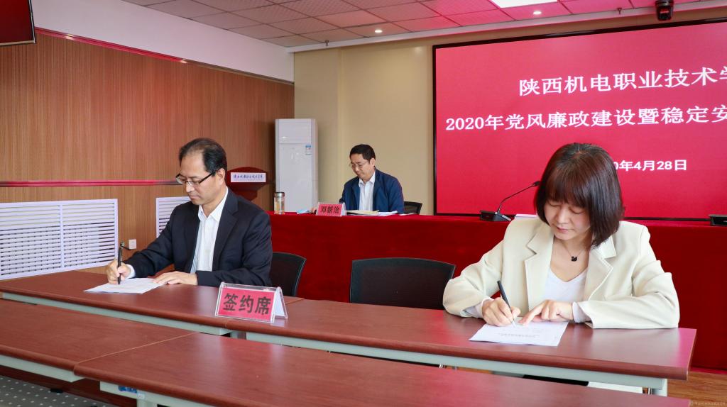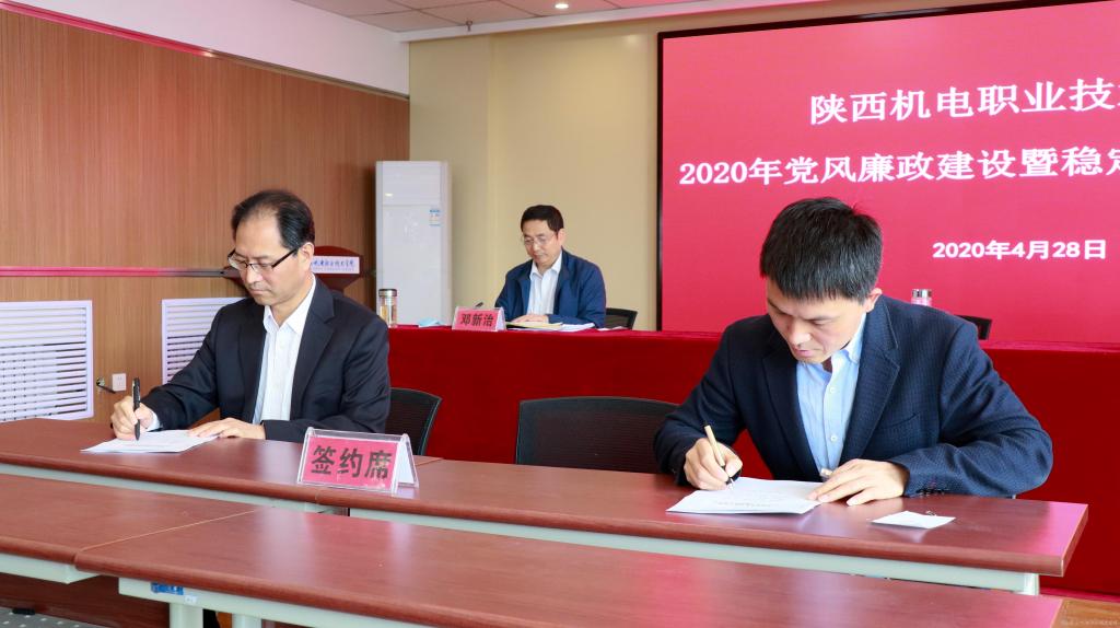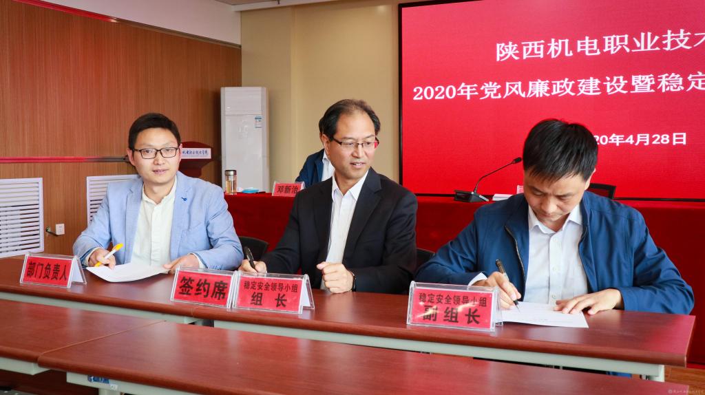 會上,黨委書記伊遜智代表學(xué)院黨委與分管領(lǐng)導(dǎo)、部門負責(zé)人代表簽訂《2020年陜西機電職業(yè)技術(shù)學(xué)院黨風(fēng)廉政建設(shè)責(zé)任書》。穩(wěn)定安全領(lǐng)導(dǎo)小組組長伊遜智與穩(wěn)定安全領(lǐng)導(dǎo)小組副組長張新堂、部門負責(zé)人代表簽訂《2020年陜西機電職業(yè)技術(shù)學(xué)院穩(wěn)定安全工作責(zé)任書》。