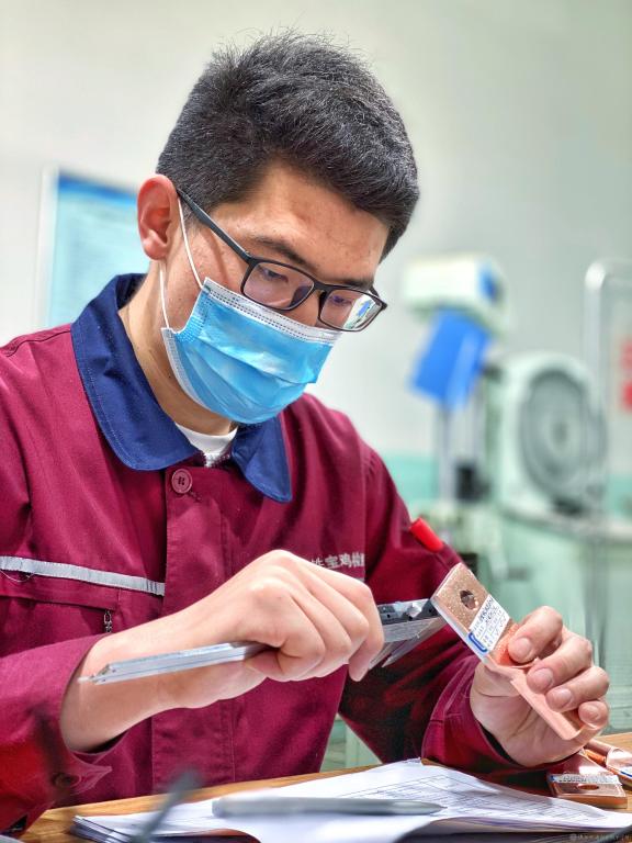 疫情發(fā)生以來,陜西省優(yōu)秀共青團(tuán)員、寶雞市優(yōu)秀共青團(tuán)員、共青團(tuán)十八大代表、寶雞檢測公司檢測試驗(yàn)部檢驗(yàn)員王海楠一直懸著一顆心。除了關(guān)注疫情的發(fā)展情況以外,他更放心不下的是公司里還未試驗(yàn)的接觸網(wǎng)零部件。春節(jié)前夕,根據(jù)公司正常計(jì)劃,蘇州五號線、上海15號線、上海18號線等接觸網(wǎng)零部件的試驗(yàn)工作安排至節(jié)后,可突如其來的疫情給試驗(yàn)按下了“暫停鍵”,一切工作戛然而止。可他心里明白,那一批接觸網(wǎng)零部件是用于國家重點(diǎn)城市軌道交通工程中,很可能因?yàn)橐桓⌒〉穆菟ň蜁?dǎo)致整個工程延期。于是王海楠主動申請?zhí)崆皬?fù)工,最終他站在了復(fù)工復(fù)產(chǎn)的第一線。王海楠說:“疫情給試驗(yàn)按下了“暫停鍵”,現(xiàn)在復(fù)工復(fù)產(chǎn)了,我要和全體成員毫不猶豫地按下試驗(yàn)的‘快進(jìn)鍵’?!睆?fù)工復(fù)產(chǎn)后,在試驗(yàn)車間每天都能看到他和工友們戴著口罩共同忙碌的身影,透過他們堅(jiān)定的眼神我們懂得了“責(zé)任”與“堅(jiān)守”。他們放棄中午休息,第一時(shí)間高質(zhì)量完成檢驗(yàn)檢測任務(wù),確保了重點(diǎn)工程的安全施工。他們在復(fù)工復(fù)產(chǎn)的第一線,為打贏這場疫情防控的人民戰(zhàn)、總體戰(zhàn)、阻擊戰(zhàn)貢獻(xiàn)了寶雞檢測的力量,為中國的電氣化鐵路事業(yè)保駕護(hù)航。
