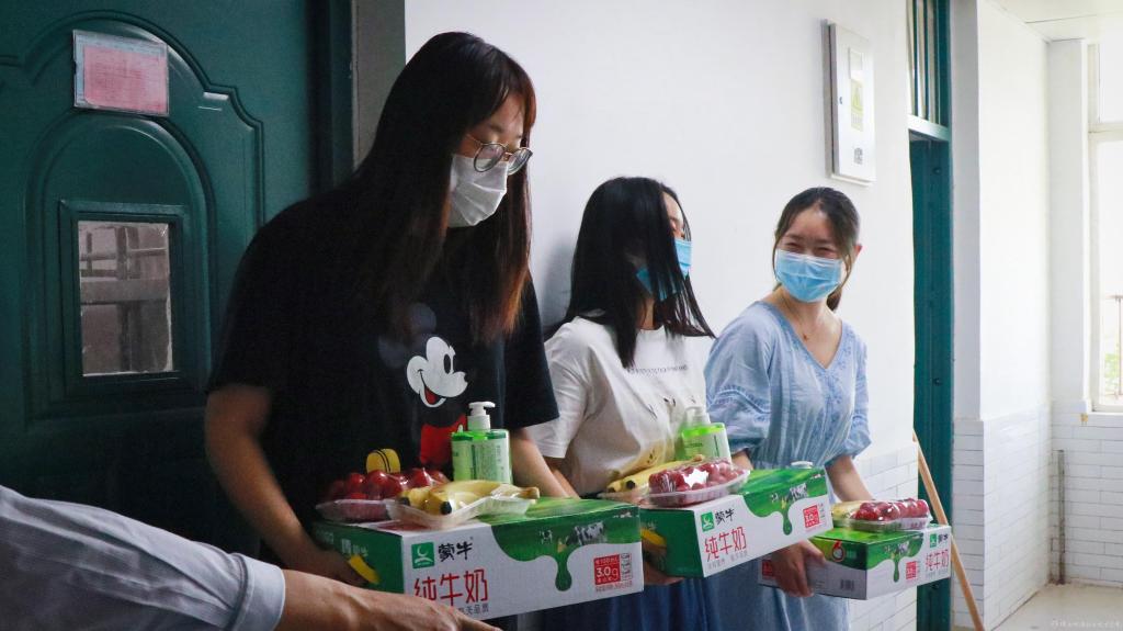 向院長在為同學們送上生活慰問物資的同時,給同學們說明近期學院防控工作要求,對同學們遵守學院管理規(guī)定、配合做好防控工作表示感謝,同時親切詢問了同學們隔離期間的學習情況、生活情況和身體情況,囑咐他們一定要加強自我防護,按時作息,保證充足的睡眠,保持良好心態(tài),保持宿舍環(huán)境衛(wèi)生和良好通風狀態(tài),在抗擊疫情中體悟對生命的敬畏,扛起家國的責任。張院長表示隔離期間有任何生活和學習上的問題及時向輔導員、學生處、院領導反映,學院將會為學生隔離期間的學習生活提供全面保障服務。