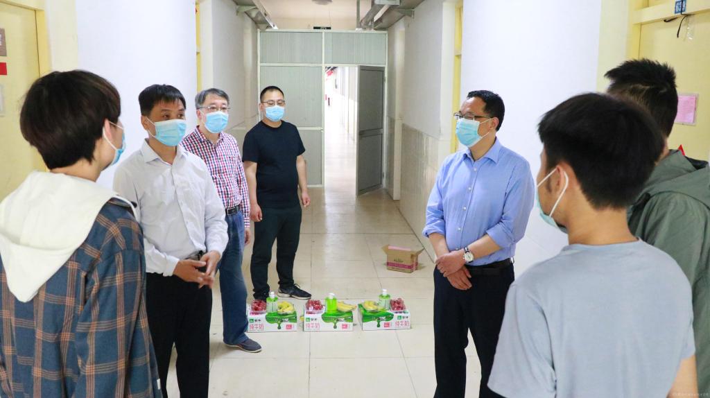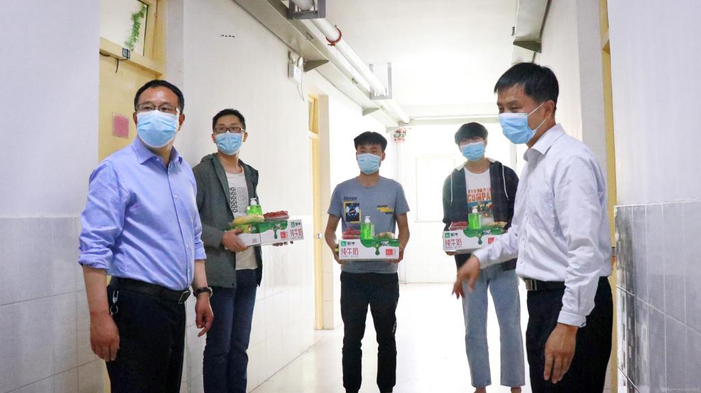 5月18日上午,學院黨委副書記、院長向紀明,副院長張新堂一行前往隔離留觀區(qū),看望并親切慰問了被隔離的同學們,學生處處長王建斌陪同。
