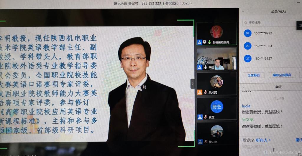 李明為大會做題為《以賽促教、以賽促改——從技能大賽談高職英語課堂教學(xué)改革》的線上報告