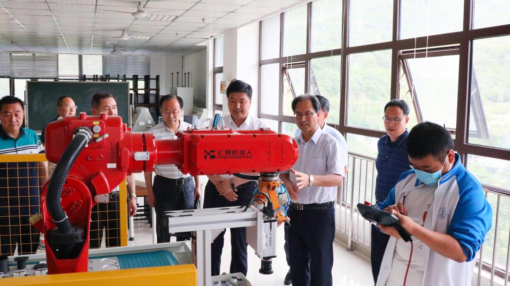 調(diào)研組一行參觀陜西機(jī)電職業(yè)技術(shù)學(xué)院工業(yè)機(jī)器人技術(shù)實(shí)訓(xùn)室(攝影|張婷)
