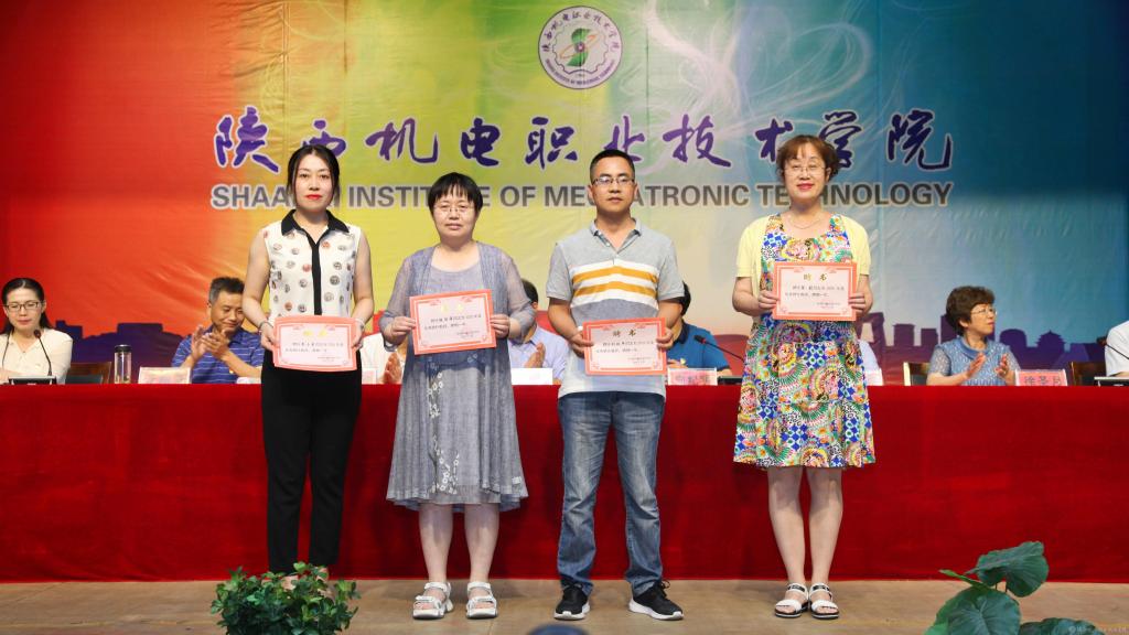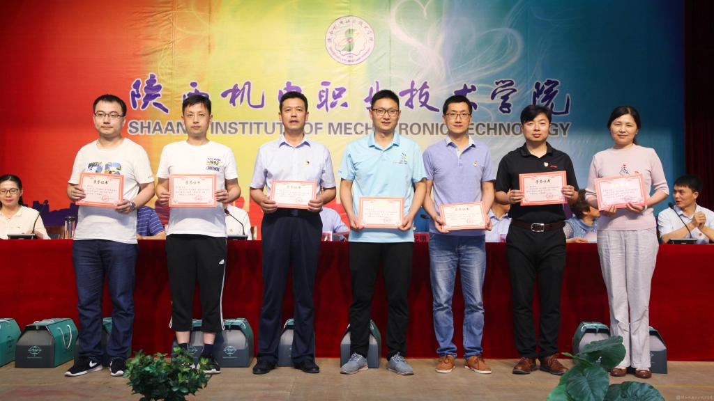 鄧新治宣讀《中共陜西機電職業(yè)技術學院委員會關于慶祝建黨99周年暨表彰先進黨支部、優(yōu)秀共產(chǎn)黨員、優(yōu)秀黨務工作者的決定》并頒獎,授予行政黨支部等5個單位“先進黨支部”,授予徐圣月等18名同志“優(yōu)秀共產(chǎn)黨員”稱號,授予邢平等3名同志“優(yōu)秀黨務工作者”榮譽稱號。