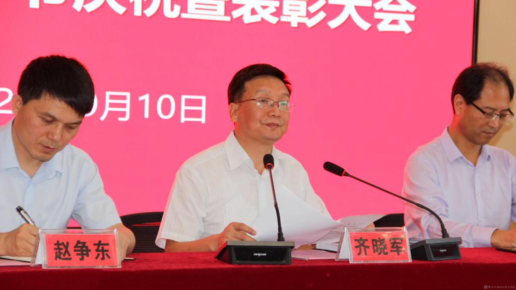 黨委副書記、紀委書記齊曉軍宣讀“陜西省2020年高等教育師德標兵”表彰文件