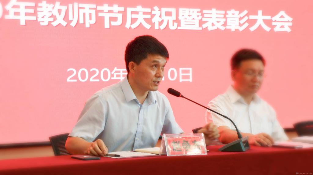 黨委委員、院長助理趙爭東宣讀2020年“師德先進個人”表彰文件,授予孟召琴、孫釗、郭靖等20位教師“師德先進個人”榮譽稱號,并給予表彰獎勵。