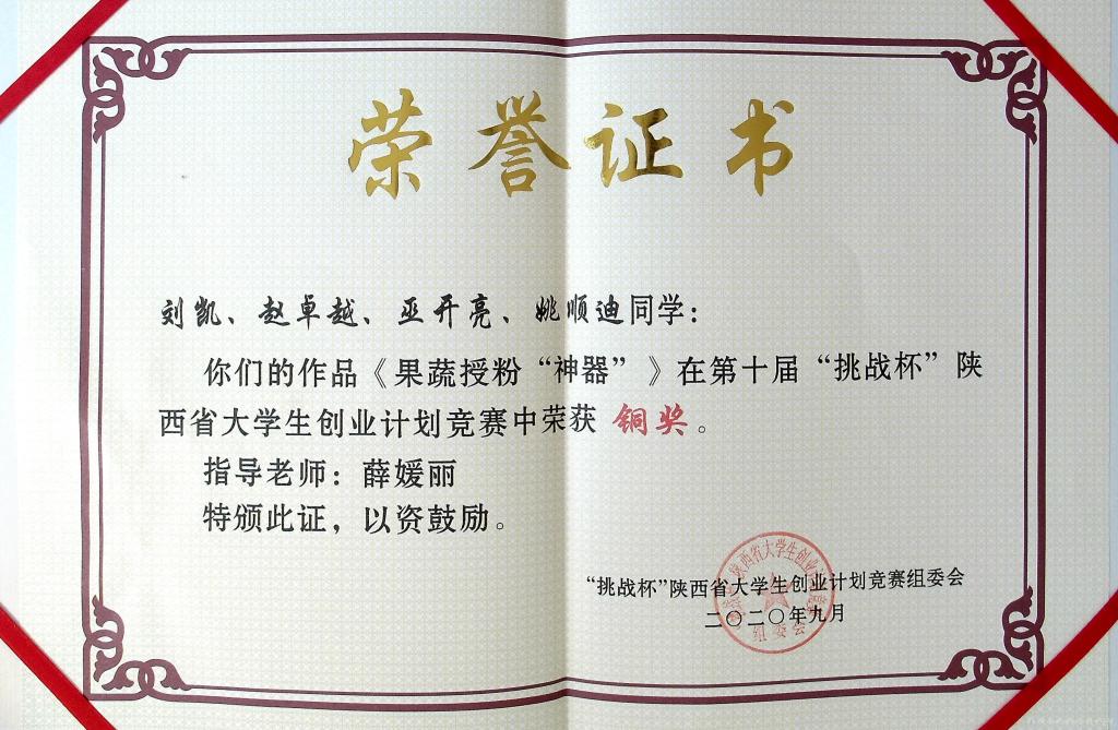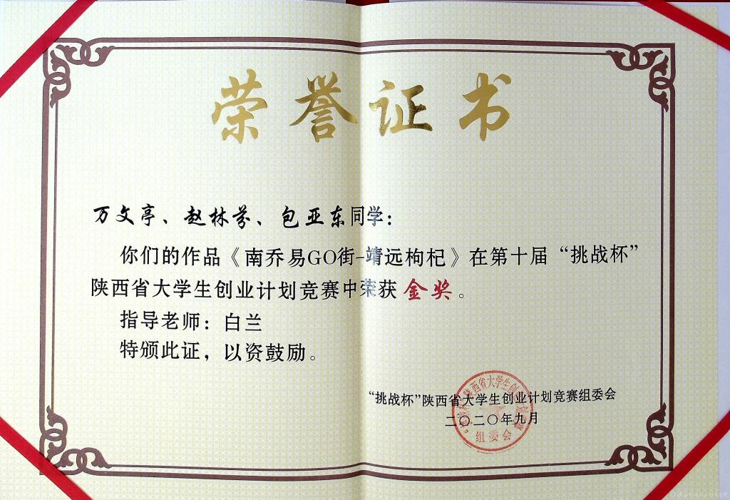 經(jīng)過(guò)組委會(huì)專(zhuān)家評(píng)審,我校學(xué)生萬(wàn)文亭、趙林芬和包亞?wèn)|在白蘭老師的指導(dǎo)下,參賽作品《南喬易GO街-靖遠(yuǎn)枸杞》獲得省賽金獎(jiǎng),同時(shí)該作品也代表我省參加國(guó)家比賽;劉凱、趙卓越、巫開(kāi)亮和姚順迪在薛媛麗老師指導(dǎo)下,參賽作品《果蔬授粉“神器”》獲得省賽銅獎(jiǎng)。