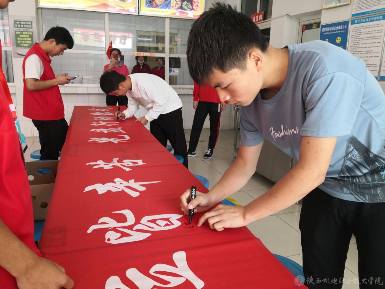 9月29日中午校團(tuán)委聯(lián)合志愿者分別在學(xué)校兩個(gè)食堂收餐處旁邊放置橫幅和小禮品,學(xué)生可憑借光盤在橫幅上簽字并領(lǐng)取禮品。