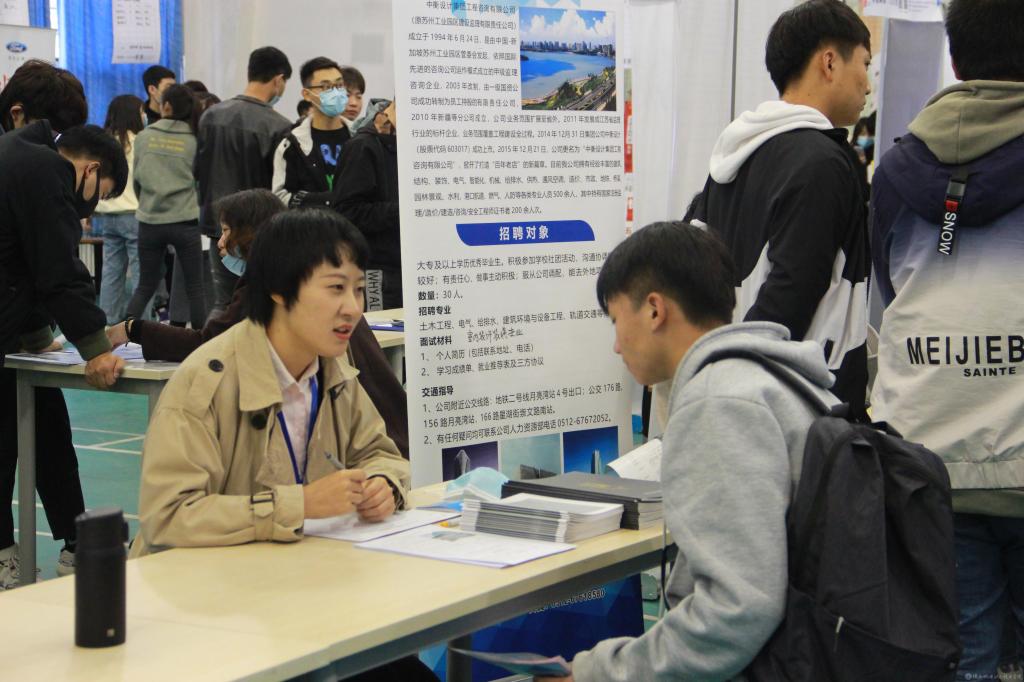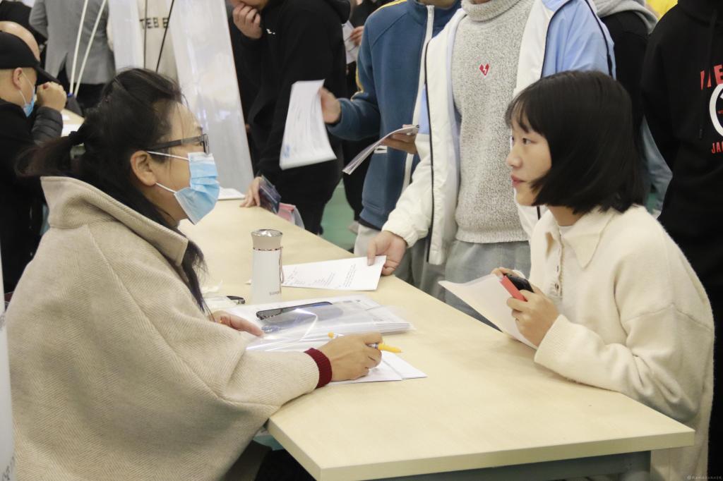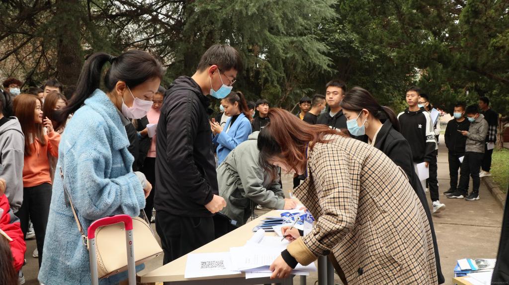上午,畢業(yè)生及用人單位代表不畏秋意寒風(fēng),早早就來到校園招聘會(huì)現(xiàn)場,開啟了求職、面試工作。招聘會(huì)現(xiàn)場氣氛熱烈,用人單位細(xì)致周到的向畢業(yè)生介紹企業(yè)發(fā)展、工作內(nèi)容、薪資待遇等情況;畢業(yè)生熱情大方的向用人單位介紹、展示自我,尋找適合自身的工作崗位。