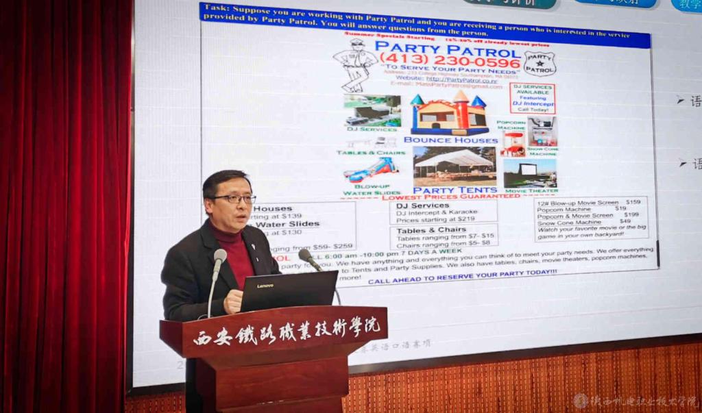 2020年11月7日、8日,2020年陜西省高等職業(yè)院校技能大賽“英語(yǔ)口語(yǔ)”賽項(xiàng)在西安鐵路職業(yè)技術(shù)學(xué)院正式拉開(kāi)帷幕。大賽由陜西省教育廳主辦,西安鐵路職業(yè)技術(shù)學(xué)院承辦,高等教育出版社協(xié)辦。來(lái)自全省38所院校的76名選手分別參加了專(zhuān)業(yè)組和公共組比賽。陜西機(jī)電職業(yè)技術(shù)學(xué)院名師工作室主持人、教育部職業(yè)院校外語(yǔ)類(lèi)專(zhuān)業(yè)教學(xué)指導(dǎo)委員會(huì)委員李明副教授應(yīng)邀為大賽交流研討會(huì)做專(zhuān)題報(bào)告。