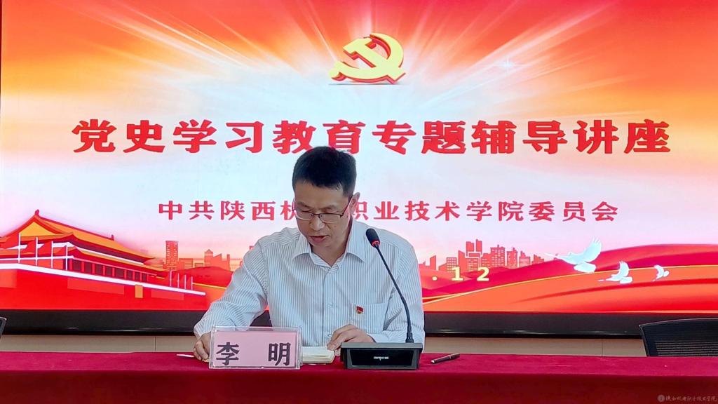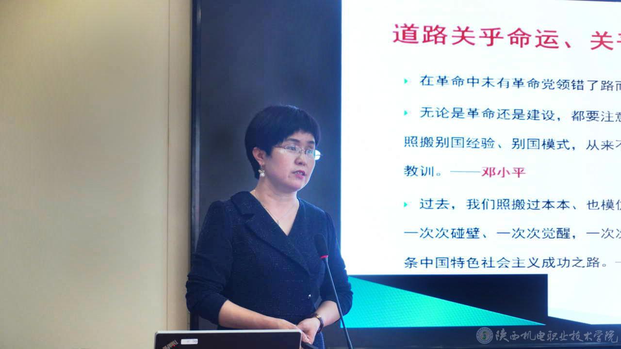 5月12日下午,陜西機電職業(yè)技術(shù)學院開展黨史學習教育專題講座。特邀寶雞市委黨校楊娟珍副教授為全校黨員作題為《來之不易的選擇——從社會主義建設史看道路自信》的講座。黨委宣傳部部長、黨史學習教育領導小組辦公室主任李明主持。