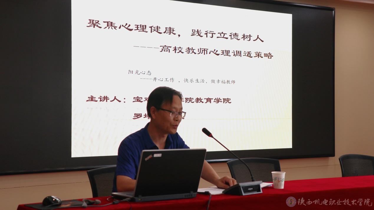 根據(jù)學校本年度教師素養(yǎng)提升計劃,為促進我校教師的心理健康,以陽光的心態(tài)管理情緒應對壓力,開心工作,快樂生活,做幸福教師,教師發(fā)展中心于6月23日下午,邀請寶雞文理學院教育科學研究所副所長、陜西省心理學會理事、寶雞市心理學會會長羅增讓教授在寶福路校區(qū)汽車機電大樓會議室為全校教職工作題為《聚焦心理健康踐行立德樹人——高校教師心理健康調(diào)適策略》的心理健康知識講座。