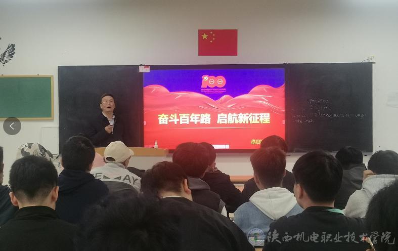 10月8日下午,黨委副書記、紀委書記齊曉軍在博學(xué)樓317教室為21機電技術(shù)1、2合班90余名學(xué)生上形勢與政策課,講授《奮斗百年路,啟航新征程》專題內(nèi)容。