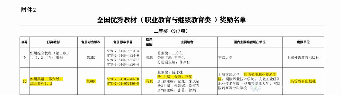 我校名師工作室主持人、基礎(chǔ)部李明副教授主編的《實(shí)用英語綜合教程(第六版)》榮獲全國(guó)優(yōu)秀教材(職業(yè)教育與繼續(xù)教育類)二等獎(jiǎng)。這是我校在教材建設(shè)成果上取得的新突破。