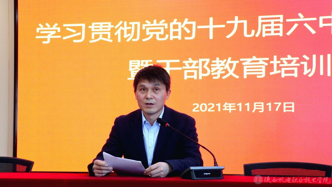 11月17日下午,學(xué)校黨委組織部在寶福路校區(qū)汽車機(jī)電大樓四樓視頻會(huì)議室組織召開學(xué)習(xí)貫徹黨的十九屆六中全會(huì)精神暨干部教育培訓(xùn)會(huì)議,全體校領(lǐng)導(dǎo)、中層干部、科級(jí)干部參加會(huì)議,會(huì)議由黨委副書記鄧新治主持。