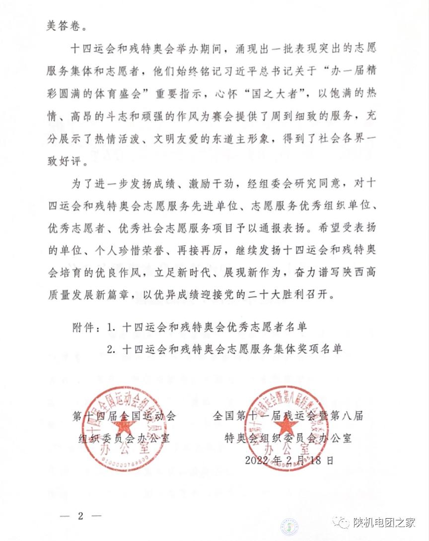 近日,第十四屆全國(guó)運(yùn)動(dòng)會(huì)組織委員會(huì)辦公室、全國(guó)第十一屆殘運(yùn)會(huì)暨第八屆特奧會(huì)組織委員會(huì)辦公室聯(lián)合印發(fā)了《關(guān)于表?yè)P(yáng)十四運(yùn)會(huì)和殘?zhí)貖W會(huì)志愿服務(wù)工作先進(jìn)單位和個(gè)人的通報(bào)》,我校榮獲“十四運(yùn)會(huì)和殘?zhí)貖W會(huì)志愿服務(wù)優(yōu)秀組織單位”榮譽(yù)稱(chēng)號(hào),我校學(xué)生胡世磊等7人榮獲“十四運(yùn)會(huì)和殘?zhí)貖W會(huì)優(yōu)秀志愿者”榮譽(yù)稱(chēng)號(hào)。