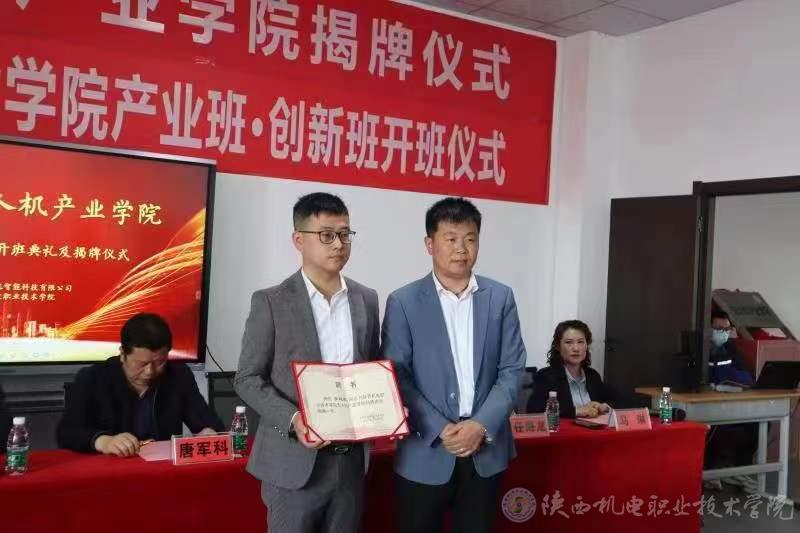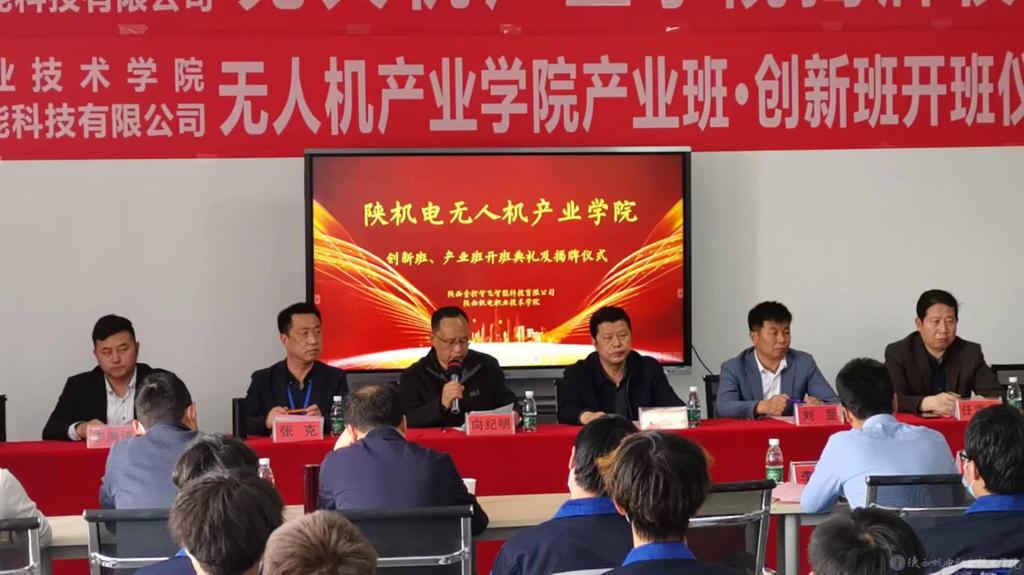 2022年4月21日,我校在蟠龍校區(qū)舉行陜機(jī)電職院-陜西壹控智飛產(chǎn)業(yè)學(xué)院揭牌及開(kāi)班典禮。寶雞市蟠龍新區(qū)管委會(huì)主任唐軍科、副主任任海龍、招商局副局長(zhǎng)李俊,陜西壹控智飛智能科技有限公司董事長(zhǎng)劉罡、總經(jīng)理李海濤、行政總監(jiān)馬琳、教學(xué)主管李超康出席會(huì)議。陜西機(jī)電職業(yè)技術(shù)學(xué)院黨委副書(shū)記、校長(zhǎng)向紀(jì)明,黨委委員、副校長(zhǎng)張克以及黨委宣傳部、招就處、校企合作處、汽車(chē)工程學(xué)院、智能制造學(xué)院等部門(mén)負(fù)責(zé)人、專業(yè)教師代表和學(xué)生代表,寶雞電視臺(tái)、寶雞廣播電臺(tái)、寶雞日?qǐng)?bào)、寶雞新聞網(wǎng)等媒體列席此次會(huì)議,會(huì)議由汽車(chē)工程學(xué)院院長(zhǎng)李靖主持。