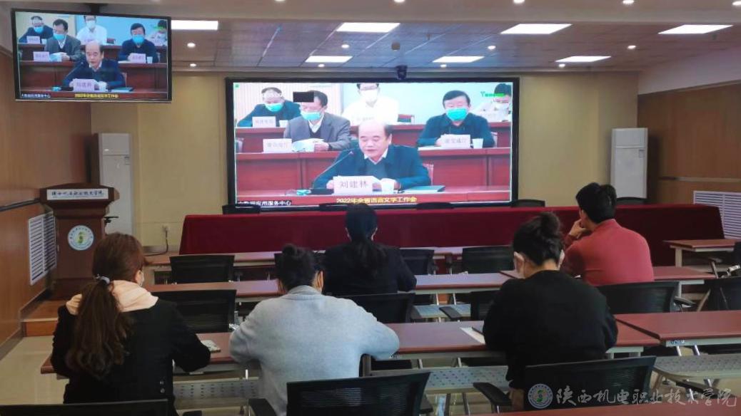 4月19日下午,2022年全省語(yǔ)言文字工作視頻會(huì)議在西安召開(kāi)。陜西省副省長(zhǎng)、省語(yǔ)委主任方光華出席并講話(huà),省教育廳廳長(zhǎng)、省語(yǔ)委副主任劉建林傳達(dá)學(xué)習(xí)2022年全國(guó)語(yǔ)言文字工作會(huì)議精神,安排部署了我省語(yǔ)言文字重點(diǎn)工作,省總工會(huì)、省文聯(lián)、陜西科技大學(xué)等單位作了交流發(fā)言。我校設(shè)分會(huì)場(chǎng),學(xué)校語(yǔ)言文字工作辦公室相關(guān)人員參加了會(huì)議。
