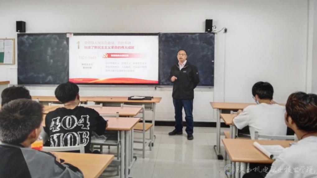 4月25日下午5、6節(jié)課,學(xué)院黨委副書記、院長向紀(jì)明在博學(xué)樓315教室為20機(jī)電技術(shù)1、20機(jī)電技術(shù)4班學(xué)生講授形式與政策課第一講《百年奮斗謀復(fù)興,勇毅前行興偉業(yè)》。