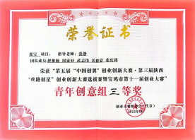 歷經(jīng)初賽、復(fù)賽、決賽的層層選拔,由我校汽車(chē)工程學(xué)院張靜老師指導(dǎo),押稚楠、周家好、武志偉、沃毅蒙、張慶祥團(tuán)隊(duì)的“廢寶”項(xiàng)目脫穎而出,獲得本次大賽青年創(chuàng)意組三等獎(jiǎng)。