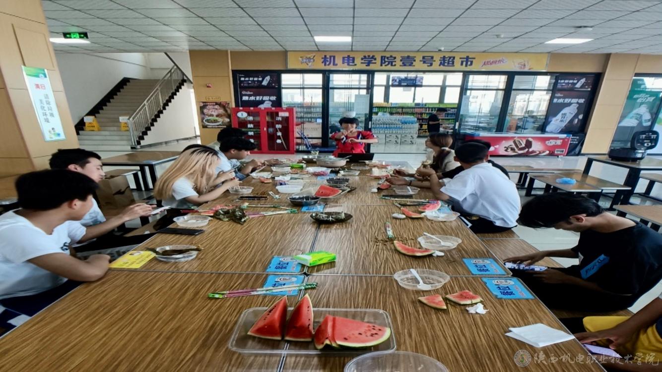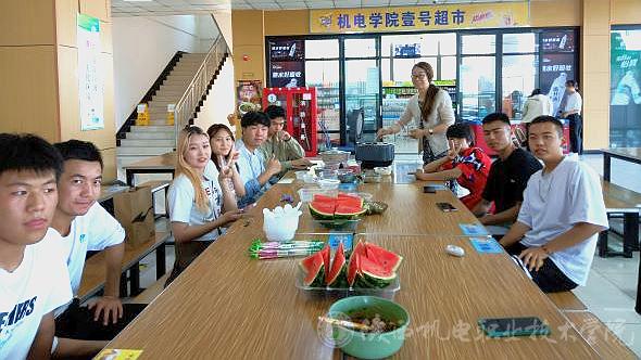 看著桌上擺放著“愛心粽子”、抓飯、涼拌菜、西瓜、櫻桃、愛意滿滿。一個個小小的粽子,一碗碗香噴噴的抓飯,讓學生感受到了濃郁的文化氣息以及學校大家庭的溫暖!下午剛剛參加了學校舞蹈技能大賽的布威海麗且姆·艾麥提同學即興為大家獻上維吾爾族舞蹈一一頂碗舞,同學們紛紛對她在大賽中取得的優(yōu)異成績表示祝賀。