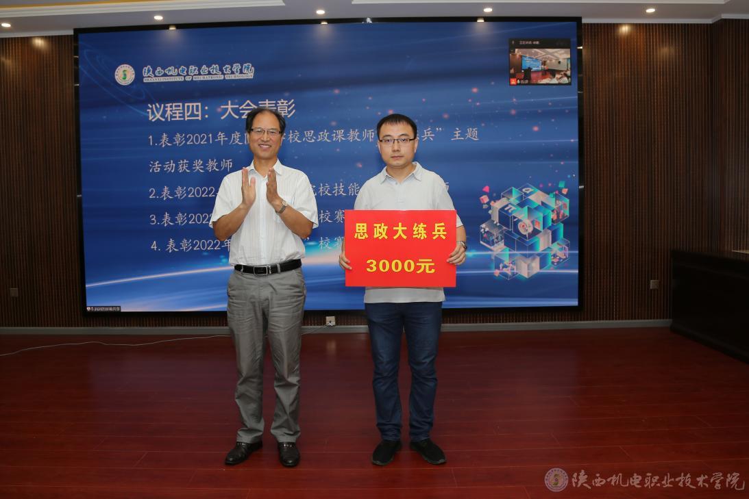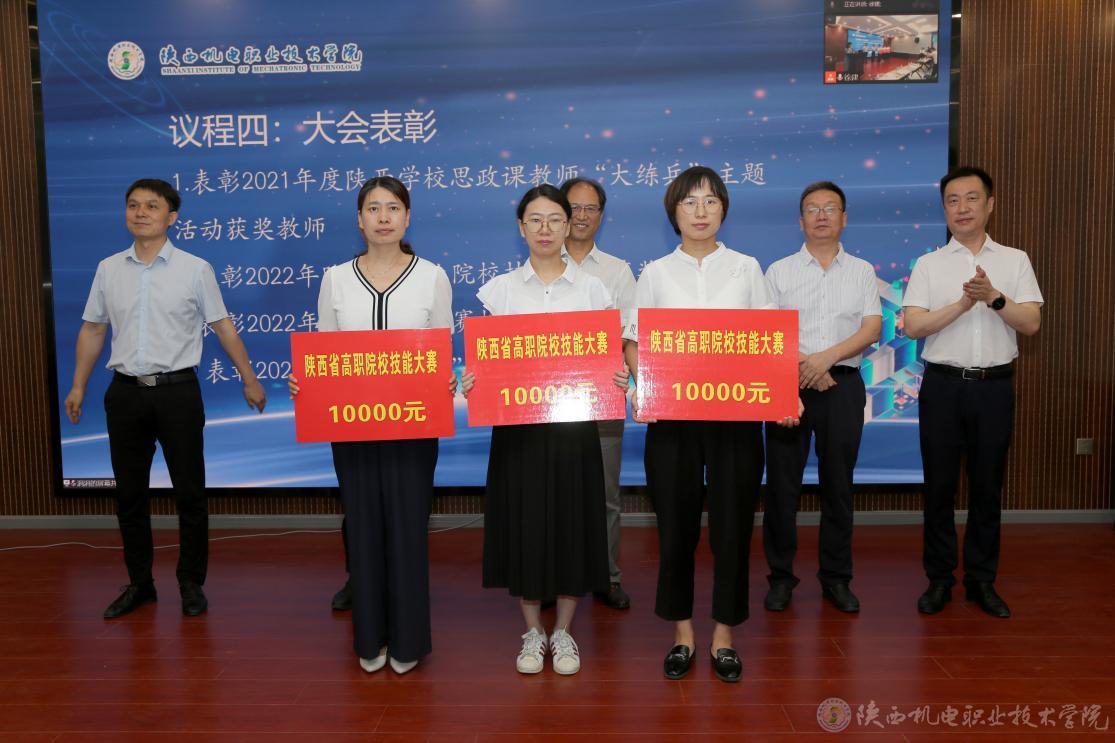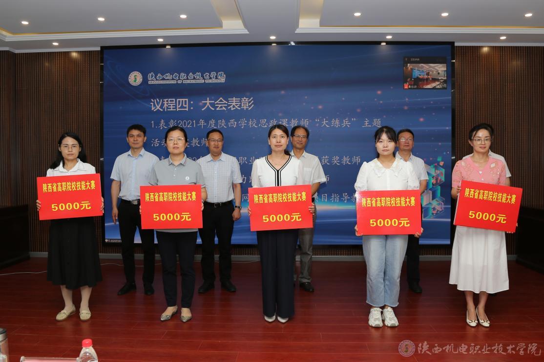 大會還對我校2021年度陜西學(xué)校思政課教師“大練兵”主題活動獲獎教師、2022年陜西省職業(yè)院校技能大賽獲獎教師、2022年教學(xué)能力比賽校賽獲獎教師、2022年“互聯(lián)網(wǎng)+”校賽獲獎項目指導(dǎo)教師進行了表彰。