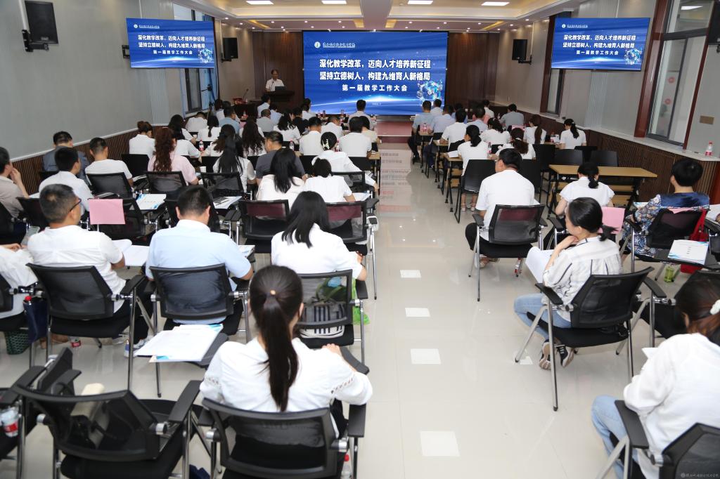 2021年是“十四五”順利啟航之年,也是學(xué)?!芭榔逻~坎”的關(guān)鍵之年,為了進一步加強和規(guī)范教育教學(xué)管理,切實提高教育教學(xué)質(zhì)量,以良好的精神面貌迎接學(xué)校發(fā)展新局面,我校在蟠龍校區(qū)隆重舉行第一屆教學(xué)工作大會。學(xué)院黨委書記伊遜智;院長、黨委副書記向紀(jì)明;黨委副書記、紀(jì)委書記齊曉軍;黨委委員、副院長張克;黨委委員、院長助理趙爭東出席本次大會。各二級教學(xué)單位、各部門主要負(fù)責(zé)人及全體老師參加了本次大會。會議由教務(wù)處長白娟娟主持。本次大會設(shè)一個主會場、三個分會場,采取直播方式進行。