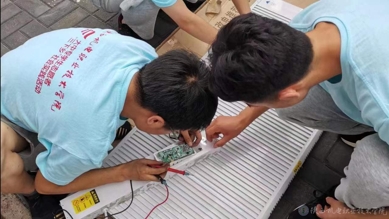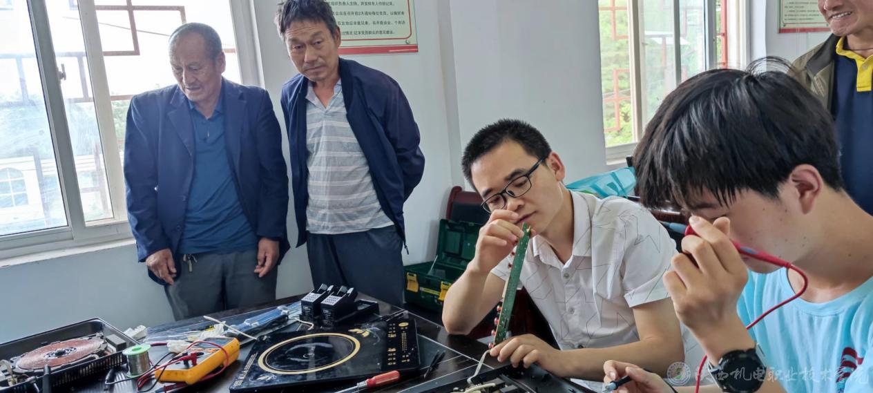 電子與信息學院的志愿者們在老師們的帶領(lǐng)下,組織開展“家電維修”實踐活動,他們分工明確、團結(jié)協(xié)作,為村民們維修家里電水壺、電飯煲、電風扇等家用電器,拿著萬用表、焊筆等專業(yè)工具,細致耐心地開始檢測、維修,讓一件件小家電“重獲新生”。雖然7月的烈陽炎熱無比,但絲毫沒有影響到志愿者們?yōu)槊穹盏男囊?,個個都在專心做著自己手中的事情。