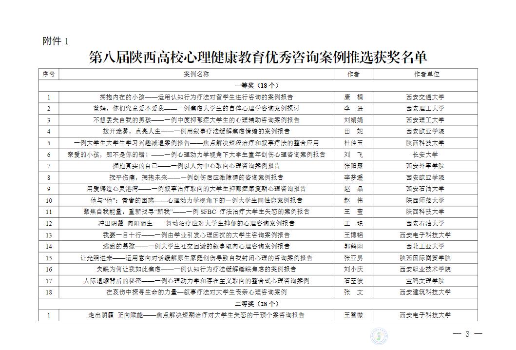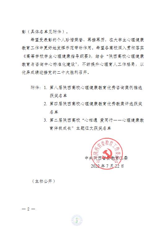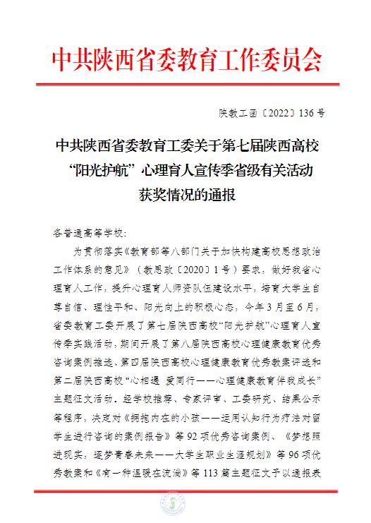 附件1: 第七屆陜西高?!瓣柟庾o航”心理育人宣傳季省級獲獎情況通告 原文