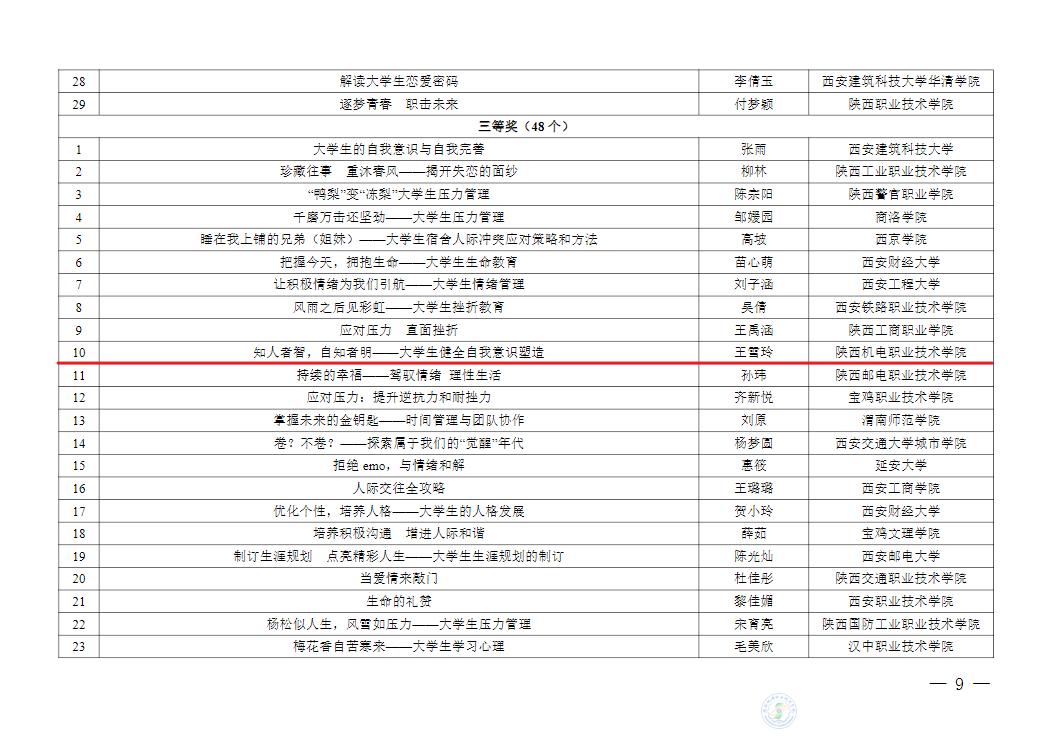 熱烈祝賀陜機電青年教師及學生在陜西省第七屆高?!瓣柟庾o航”心理育人宣傳季省級有關活動中獲得優(yōu)異成績。