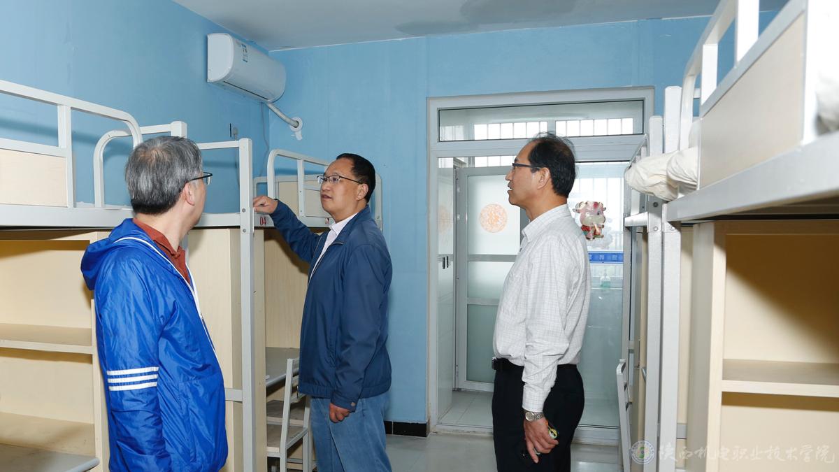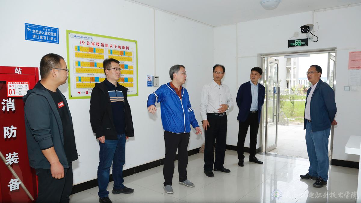 為抓實開學準備工作,迎接同學們返?!盎丶摇保?月26日,校黨委書記伊遜智、院長向紀明再次帶隊檢查指導了蟠龍校區(qū)開學前準備工作,深入學校生活區(qū)、實訓大樓等地檢查指導工作。院長助理趙爭東、學生處處長王建斌、后勤保障處副處長盧彥峰及相關項目負責人同行。