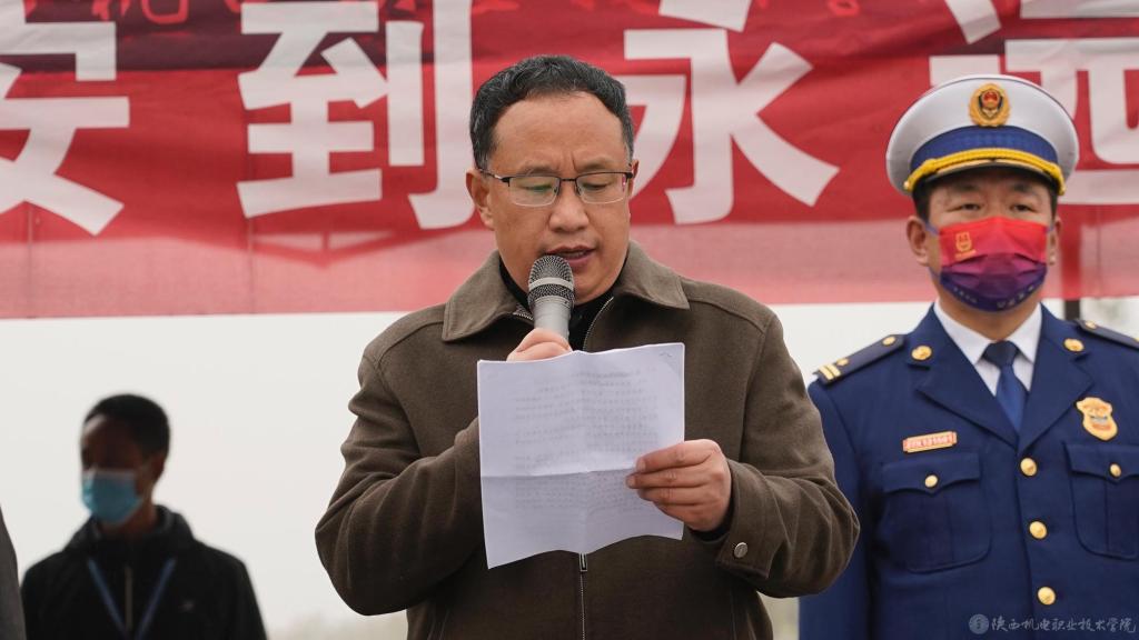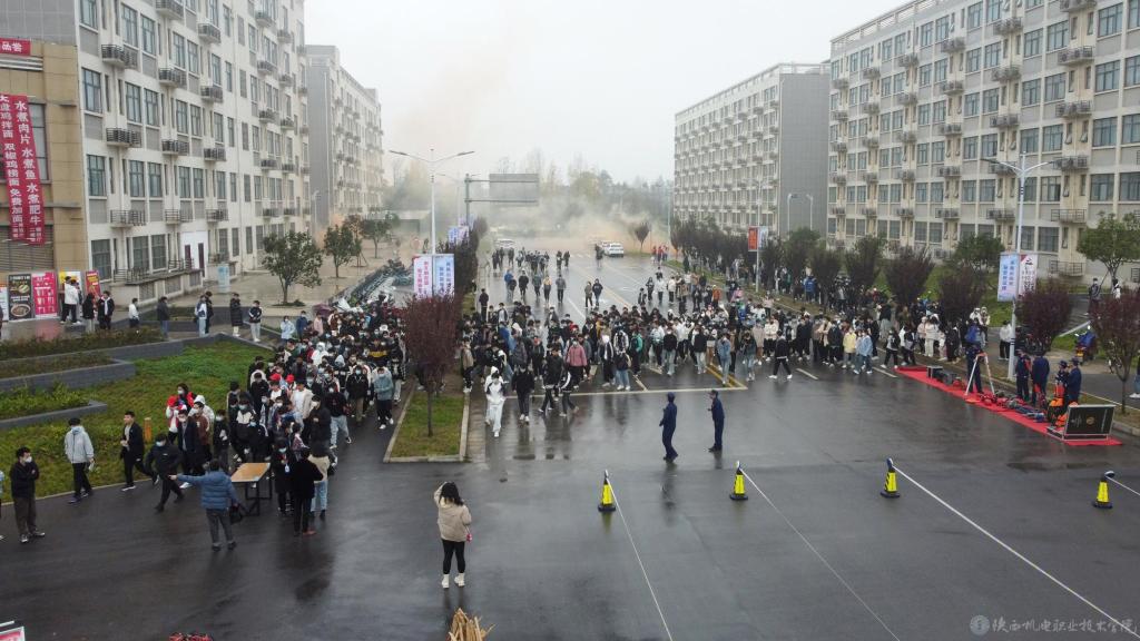 11月9日下午1點(diǎn),2022年陜西機(jī)電職業(yè)技術(shù)學(xué)院聯(lián)合寶雞市公安局、寶雞市金臺(tái)消防救援大隊(duì)在蟠龍校區(qū)龍池大道舉行全校消防應(yīng)急逃生演練。寶雞市公安局經(jīng)文保支隊(duì)雷戰(zhàn)衛(wèi)支隊(duì)長(zhǎng)、金臺(tái)消防救援大隊(duì)黃興利大隊(duì)長(zhǎng)、金臺(tái)分局經(jīng)文保大隊(duì)黨斌大隊(duì)長(zhǎng)及學(xué)院黨委書記伊遜智,黨委副書記、院長(zhǎng)向紀(jì)明,黨委副書記、紀(jì)委書記齊曉軍,副院長(zhǎng)張新堂及宣傳部部長(zhǎng)李明出席本次演練活動(dòng),活動(dòng)由保衛(wèi)處副處長(zhǎng)常小凱主持。