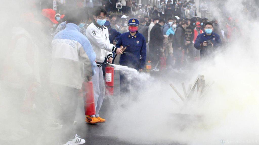 隨后有序開展了消防趣味運(yùn)動(dòng)會(huì)、消防滅火實(shí)戰(zhàn)演練、消防器材展等互動(dòng)環(huán)節(jié),到場(chǎng)的消防員們?cè)诂F(xiàn)場(chǎng)言傳身教,為同學(xué)們展示了不同種類滅火器的使用方法并普及相關(guān)消防知識(shí),同學(xué)們也在現(xiàn)場(chǎng)手拿滅火器進(jìn)行實(shí)操。使學(xué)生們親身體驗(yàn)了消防員工作的辛苦,同時(shí)對(duì)消防安全規(guī)范有了更進(jìn)一步的了解。