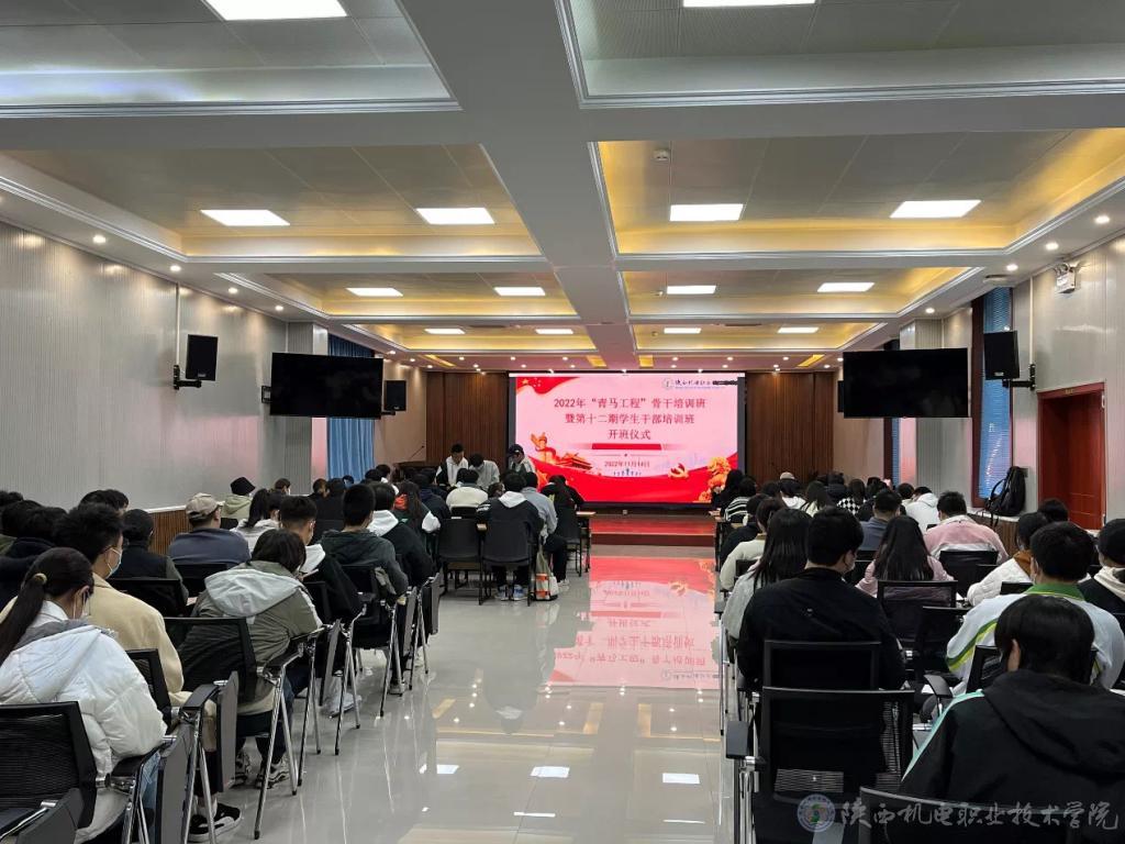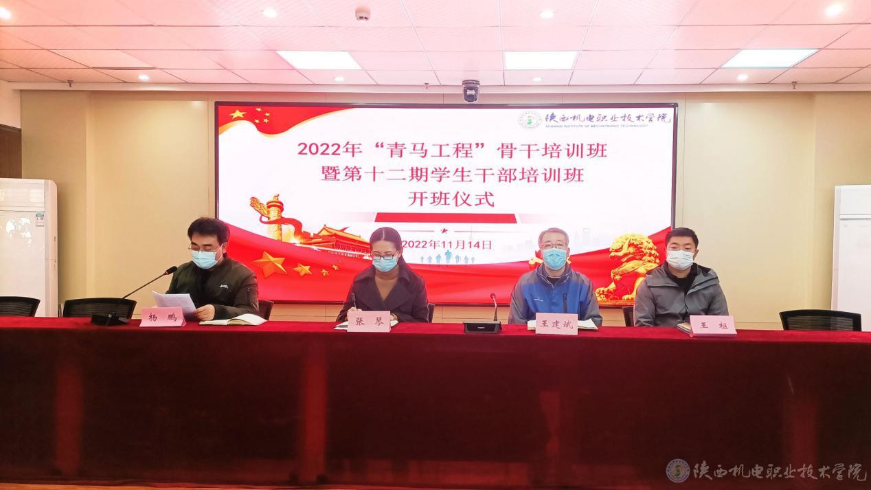 為深入學習貫徹黨的二十大精神,深入開展“青年馬克思主義者培養(yǎng)工程”,用黨的先進理論武裝、指引青年學子,11月14日,2022年“青馬工程”培訓班暨第十二期學生干部培訓班開班儀式在寶福路校區(qū)汽車機電大樓4樓視頻會議室舉行,蟠龍校區(qū)在博學樓一樓會議室同步收看。黨委副書記張琴,黨委學工部部長、學生處處長王建斌,馬克思主義學院副院長王樞,各二級學院團總支書記和全體學員參加儀式。開班儀式通過線上和線下兩種方式相結(jié)合,儀式由團委書記楊鵬主持。