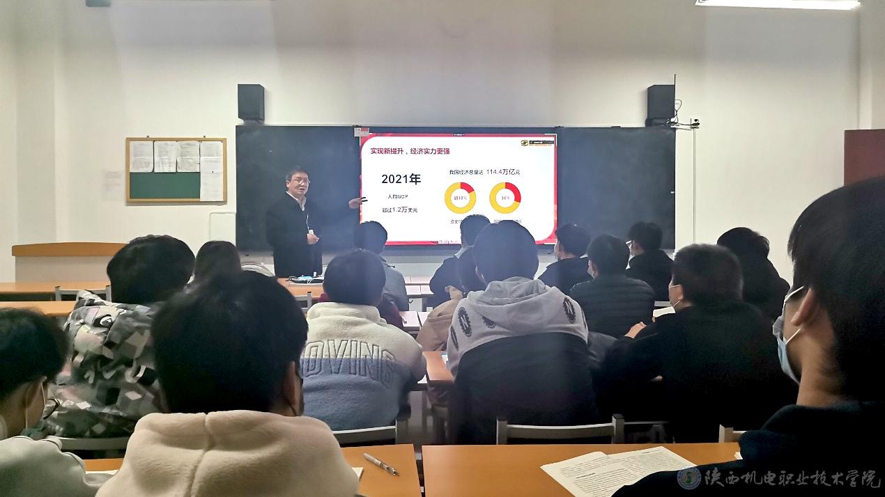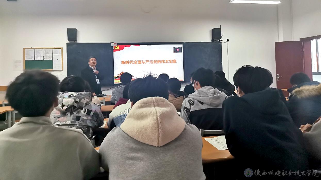11月24日下午,學(xué)院黨委副書記、紀(jì)委書記齊曉軍在博學(xué)樓315教室為22機(jī)電技術(shù)2班40余名學(xué)生上形勢與政策課,講授《新時代全面從嚴(yán)治黨的偉大實踐》和《偉大時代的歷史跨越》兩個專題內(nèi)容。