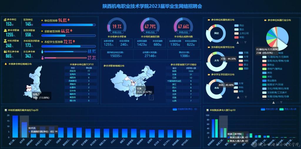 招聘會(huì)前,招生就業(yè)處聯(lián)合各學(xué)院提前做好招聘會(huì)宣傳工作,梳理網(wǎng)絡(luò)招聘會(huì)需求崗位,向畢業(yè)生精準(zhǔn)推送。招聘會(huì)中,各部門持續(xù)跟進(jìn)畢業(yè)生入場簽到、簡歷投遞、面試及簽約情況,電話、短信溫馨提示參會(huì)用人單位查閱并處理畢業(yè)生應(yīng)聘信息。招聘會(huì)后,各部門將積極主動(dòng)對接用人單位,加強(qiáng)溝通了解,組織好畢業(yè)生錄用報(bào)到等相關(guān)事項(xiàng)。