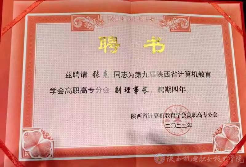 論壇期間,為陜西省計(jì)算機(jī)教育學(xué)會(huì)高職高專分會(huì)理事頒發(fā)了聘書,張克被聘為副理事長,姜有奇被聘為常務(wù)理事。
