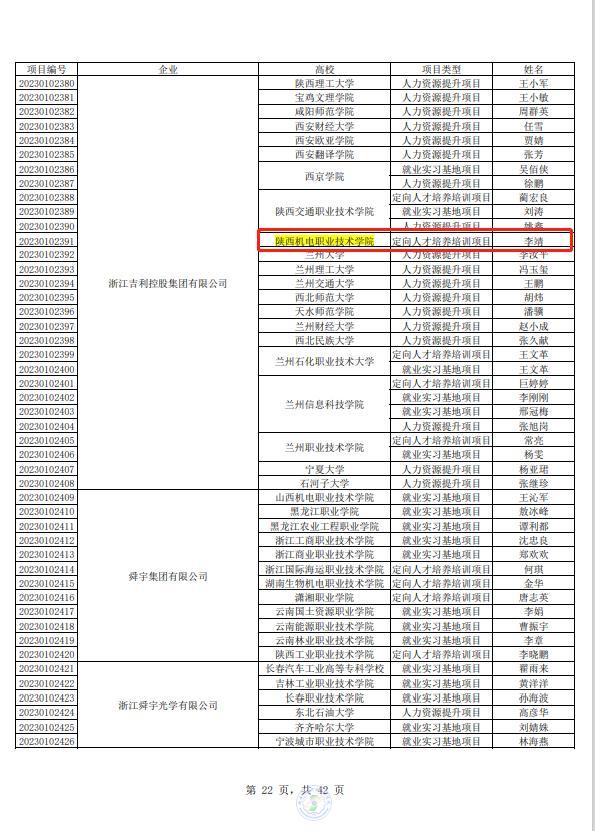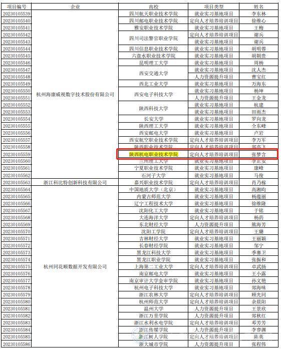 4月6日,教育部高校學(xué)生司印發(fā)了《關(guān)于公布第二期供需對(duì)接就業(yè)育人項(xiàng)目立項(xiàng)名單的通知》(教學(xué)司函〔2023〕6號(hào))。其中,我校與浙江吉利控股集團(tuán)有限公司、杭州??低晹?shù)字技術(shù)股份有限公司、廣聯(lián)達(dá)科技股份有限公司等3家企業(yè)的定向人才培養(yǎng)培訓(xùn)項(xiàng)目獲批。這是我校首次參加并獲批教育部供需對(duì)接就業(yè)育人項(xiàng)目,也是我校高度重視產(chǎn)教融合、校企合作的重要成果。