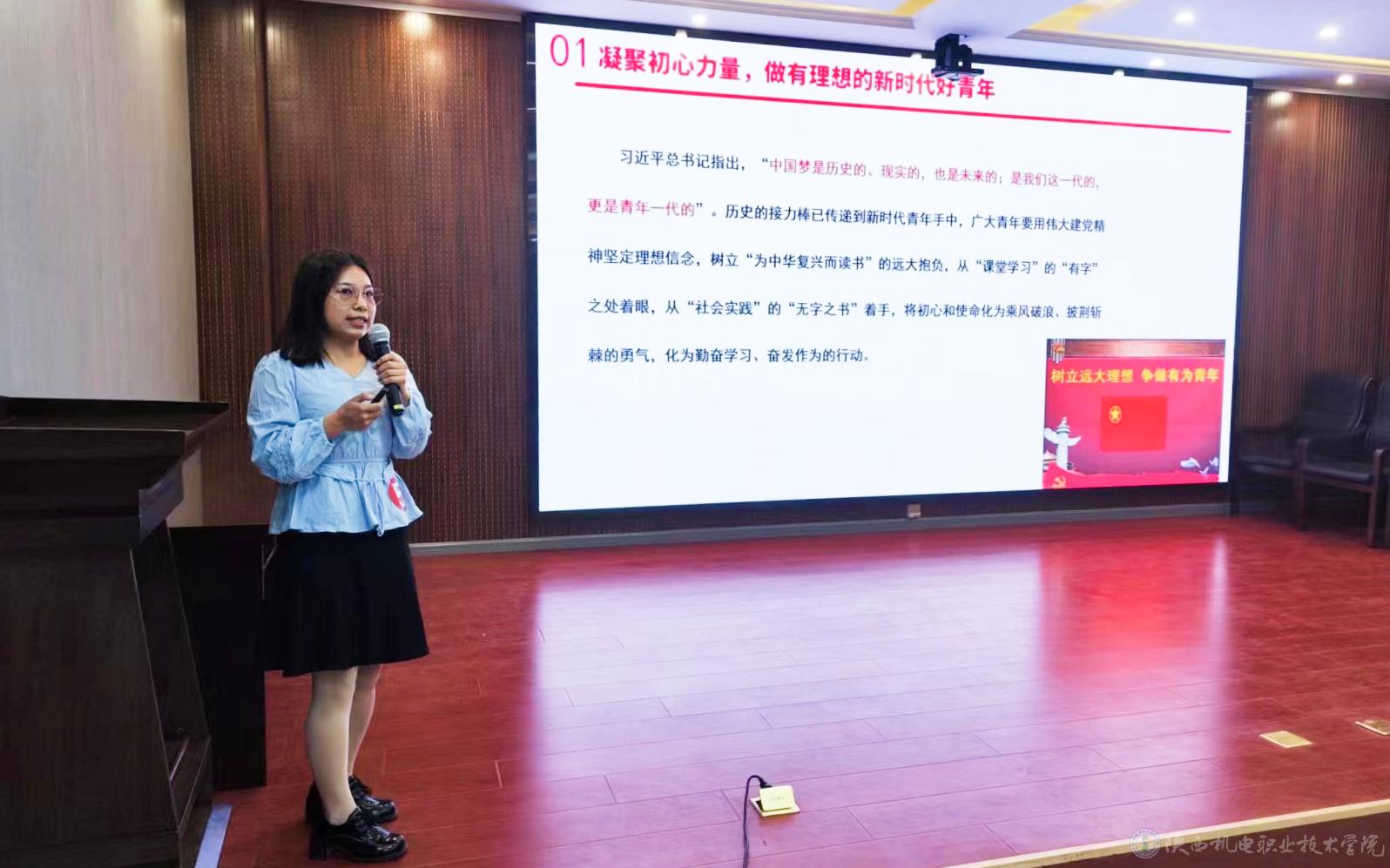 共青團是黨聯(lián)系青年群眾的橋梁和紐帶,團干部是戰(zhàn)斗在基層團組織的先鋒號手,要牢記初心使命,堅定理想信念,牢牢把握學(xué)習貫徹習近平新時代中國特色社會主義思想。本次大賽緊緊圍繞學(xué)校“九維育人”工作模式,以立德樹人為根本任務(wù),實現(xiàn)了“以賽促訓(xùn)、以賽促學(xué)、以賽促建”的初衷,搭建了有助于團干部成長提升的舞臺,探索團干部隊伍建設(shè)的有效途徑。通過本次比賽,廣大團干部將不斷創(chuàng)新基層團組織建設(shè)和團員引領(lǐng)教育的途徑與載體,有效發(fā)揮基層團組織的工作職能,切實提升基層團組織的運行活力,不斷提高陜西機電職業(yè)技術(shù)學(xué)院團干部隊伍建設(shè)的專業(yè)化和科學(xué)化水平,推動學(xué)校共青團工作高質(zhì)量發(fā)展,推進陜西機電職業(yè)技術(shù)學(xué)院共青團工作再上新臺階!