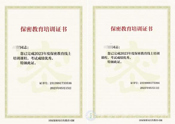 參加一次保密教育線上培訓(xùn)。截至5月22日,全校71名涉密人員通過(guò)登錄“保密觀”APP和中國(guó)保密在線網(wǎng)站培訓(xùn)系統(tǒng),學(xué)習(xí)了保密優(yōu)良傳統(tǒng)、法律法規(guī)、基礎(chǔ)知識(shí)、技術(shù)防范和警示案例等5個(gè)方面的相關(guān)知識(shí),完成保密教育線上培訓(xùn)工作,取得培訓(xùn)優(yōu)秀或合格證書(shū)。通過(guò)學(xué)習(xí),參訓(xùn)人員進(jìn)一步加深了對(duì)保密工作重要性的認(rèn)識(shí),對(duì)如何防泄密、管保密工作有了更準(zhǔn)確地掌握。