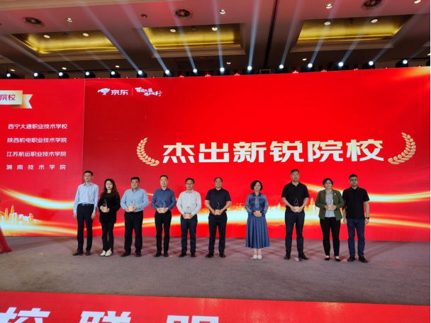 活動(dòng)現(xiàn)場(chǎng),張克代表我校領(lǐng)取了“杰出新銳院校”獎(jiǎng)項(xiàng)。我校與京東集團(tuán)自2022年5月開(kāi)始合作,主要建立了數(shù)字處理產(chǎn)業(yè)基地、籌建京東數(shù)字技術(shù)產(chǎn)業(yè)學(xué)院項(xiàng)目,開(kāi)展崗位實(shí)習(xí)等。該獎(jiǎng)項(xiàng)的獲得是京東集團(tuán)對(duì)雙方開(kāi)展校企合作、產(chǎn)教融合工作的高度肯定。