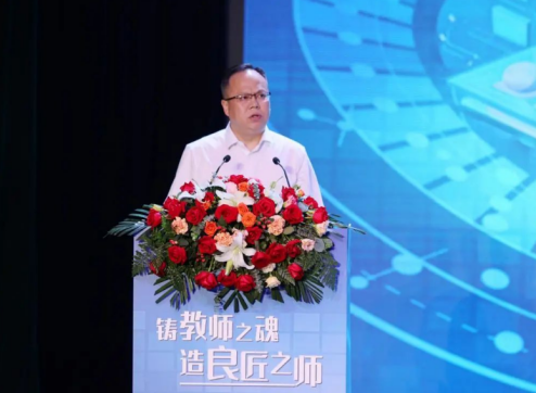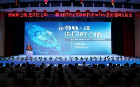 教育部教師工作司副司長翁波指出,教師隊伍建設(shè)是職業(yè)教育發(fā)展的根本,我國的職業(yè)教育教師隊伍結(jié)構(gòu)不斷優(yōu)化,專業(yè)發(fā)展成效顯著,校企合作渠道順暢,先進典型不斷涌現(xiàn),有力地支撐了現(xiàn)代化產(chǎn)業(yè)體系建設(shè)和高質(zhì)量發(fā)展。他介紹了此次宣講會活動的背景和宣講團組建的過程,號召全國各地各校職教教師向宣講團的優(yōu)秀教師學(xué)習,將他們的精神發(fā)揚光大,開花結(jié)果,為建設(shè)現(xiàn)代化的職業(yè)教育體系,為建設(shè)教育強國貢獻力量。