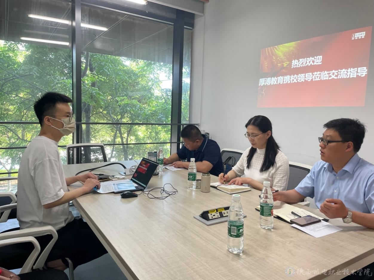 在考察期間,張琴一行就學(xué)校與武漢厚溥教育科技有限公司合作以來(lái)的運(yùn)行情況進(jìn)行了坦誠(chéng)有效的溝通,肯定了公司在招生、教學(xué)等方面好的做法和取得的成績(jī),也指出了目前在教育教學(xué)、實(shí)習(xí)就業(yè)等方面存在的不足。雙方表示要進(jìn)一步完善機(jī)制,加強(qiáng)協(xié)作,充分發(fā)揮雙方優(yōu)勢(shì)資源,持續(xù)提升教育教學(xué)質(zhì)量。